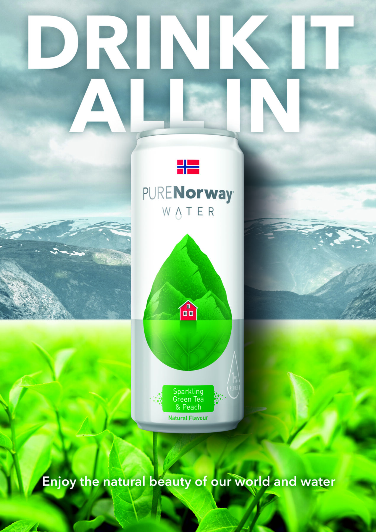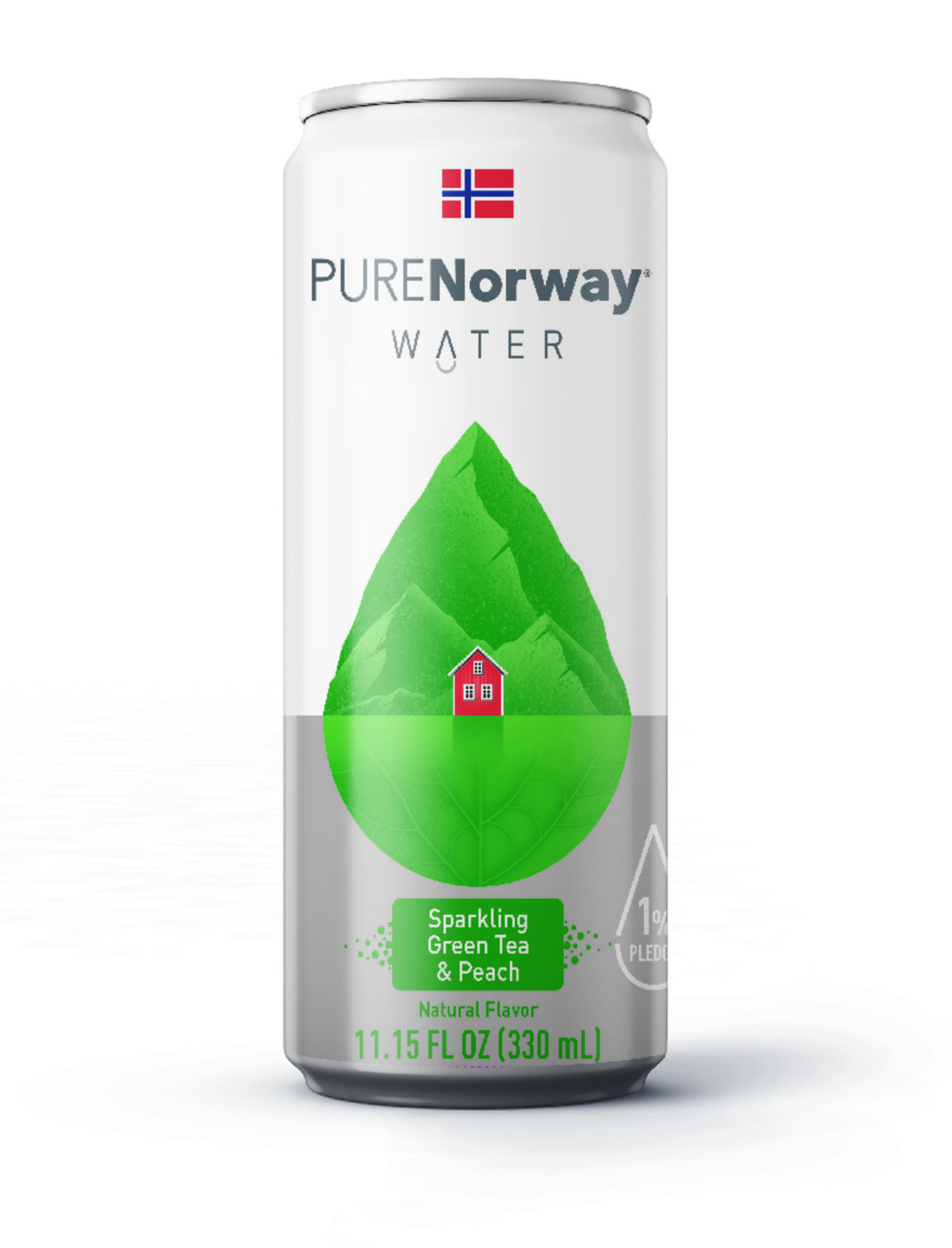 Green Tea & Peach, Sparkling, PureNorwayWater, 24 stk, 0,33L, Inkl Pant: 2,-/stk
