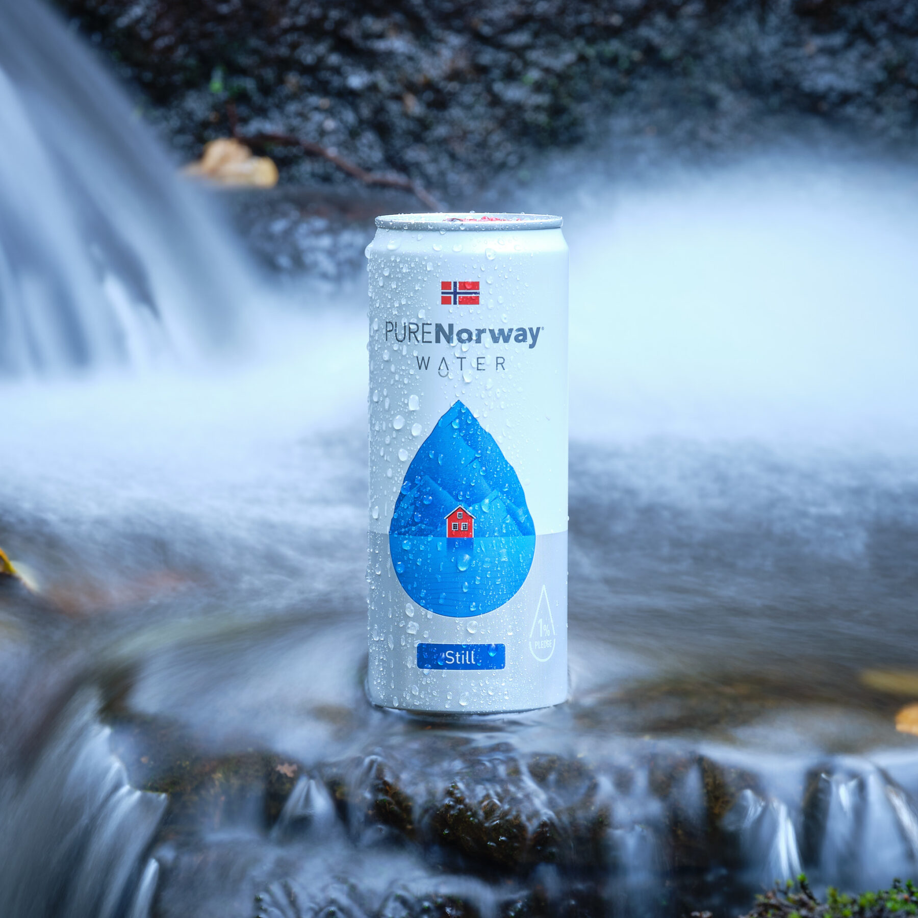 Norsk vann, fra Norge, tappet i Norge – på bærekraftige alu boks. Naturlig filtrert igjennom marmor